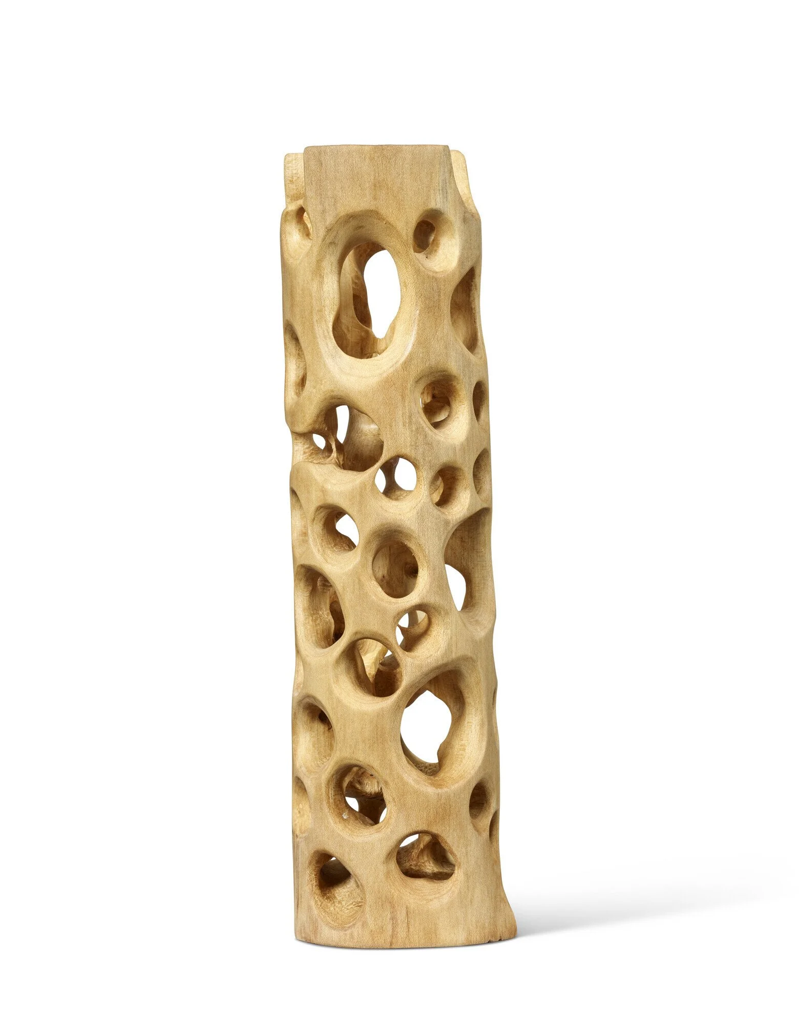 Whole is a series created from reclaimed pieces of firewood and magnified into chains of cavernous spaces. The pieces are inspired by generative design to create a natural but alien form within the wood. Working to an idea, the artist uses subtractive sculpting to guide the interior shape and open portals for the viewer to explore and discover the intricacies within the space.